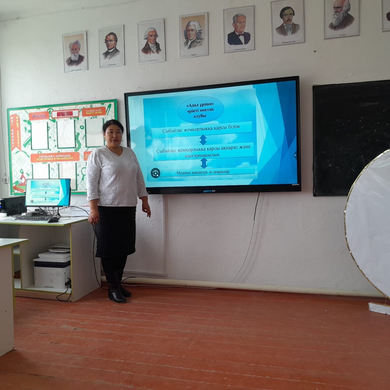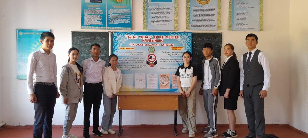 Қазалы ауданы Бекарыстан би ауылында орналасқан Ү.Түктібаев атындағы N24 орта мектептің тәлімгерінің ұйымдастыруымен «Адал ұрпақ — саналы ұрпақ» тақырыбында клуб мүшелерімен ақпараттық түсіндірме жұмыстары жүргізілді.